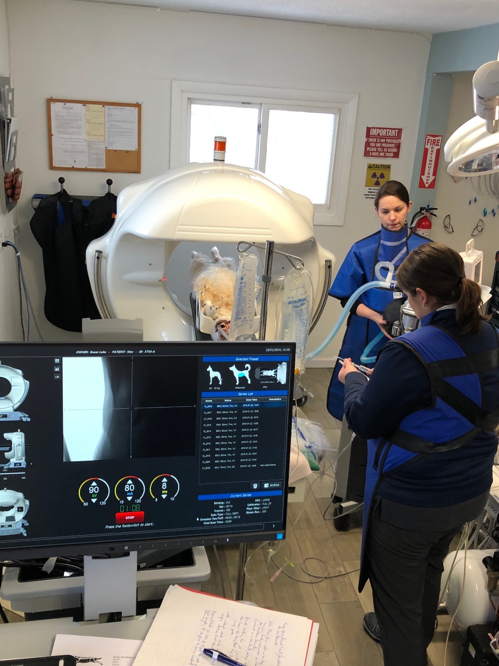 Our CT machine is called the PICO. It is the smallest scanner currently made in the world. This machine can provide image results that are 2-3 times more detailed than many micro CT machines. With our CT machine, we are able to take an image of your pet every half of a degree, which is 720 images! The computer then reconstructs those images into a 3D rendering of your pet's skull. We can then view that rendering in slices at 0.15mm thick! For reference, a human hair is about 0.1mm thick. Very few CT units in this category have this capability.